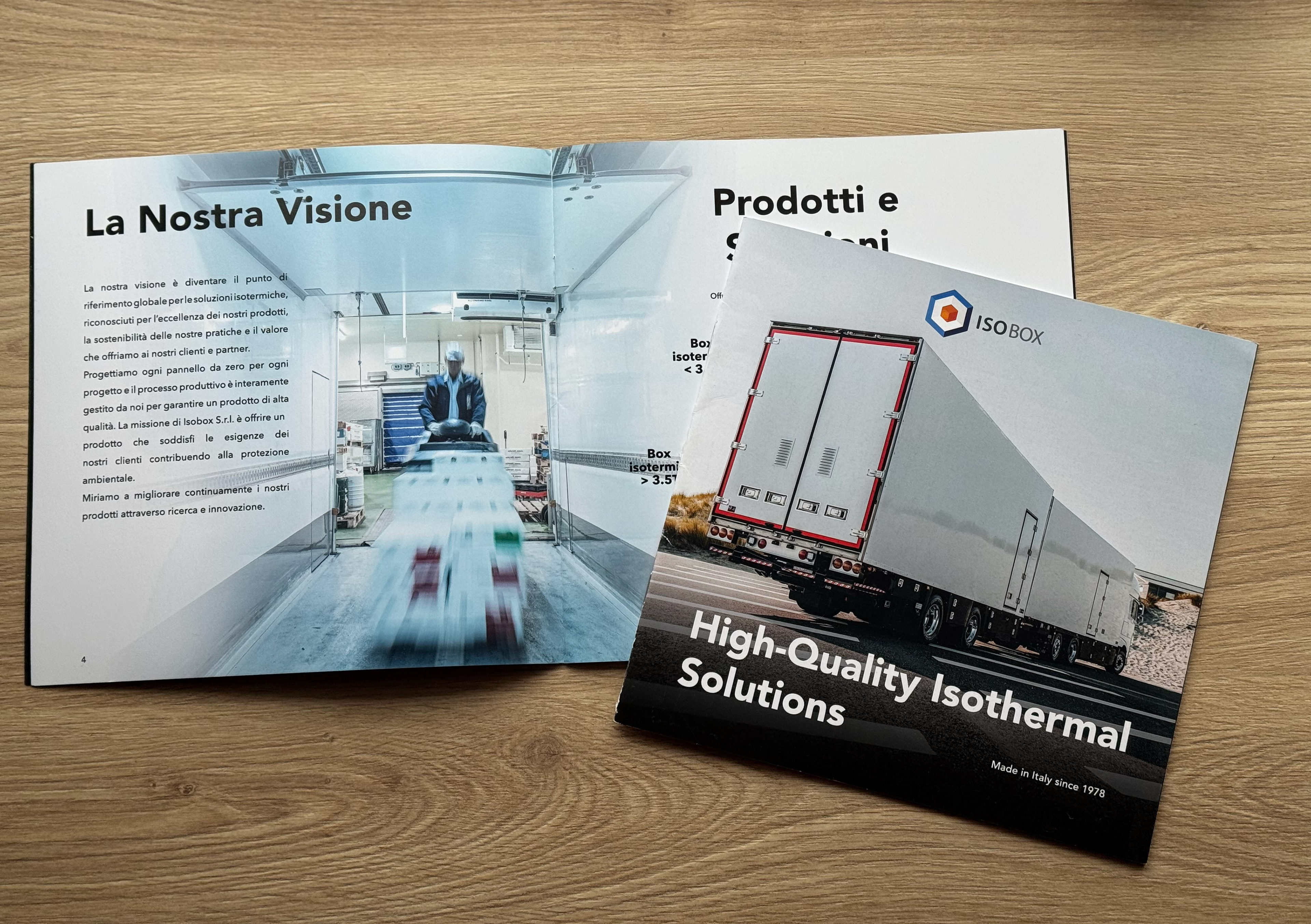 Voor het Italiaanse bedrijf Isobox mocht ik de brochure en beurswanden ontwerpen.
